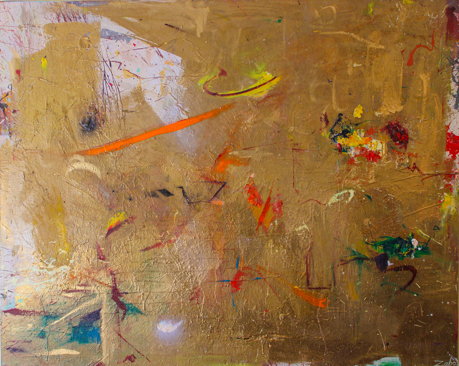 Oil, acrylic, oilstick, spray, markers and collage on canvas