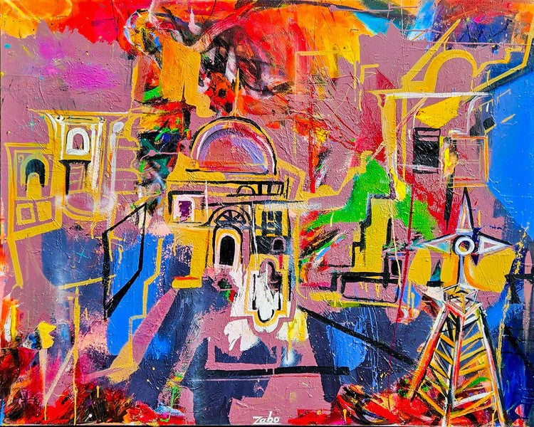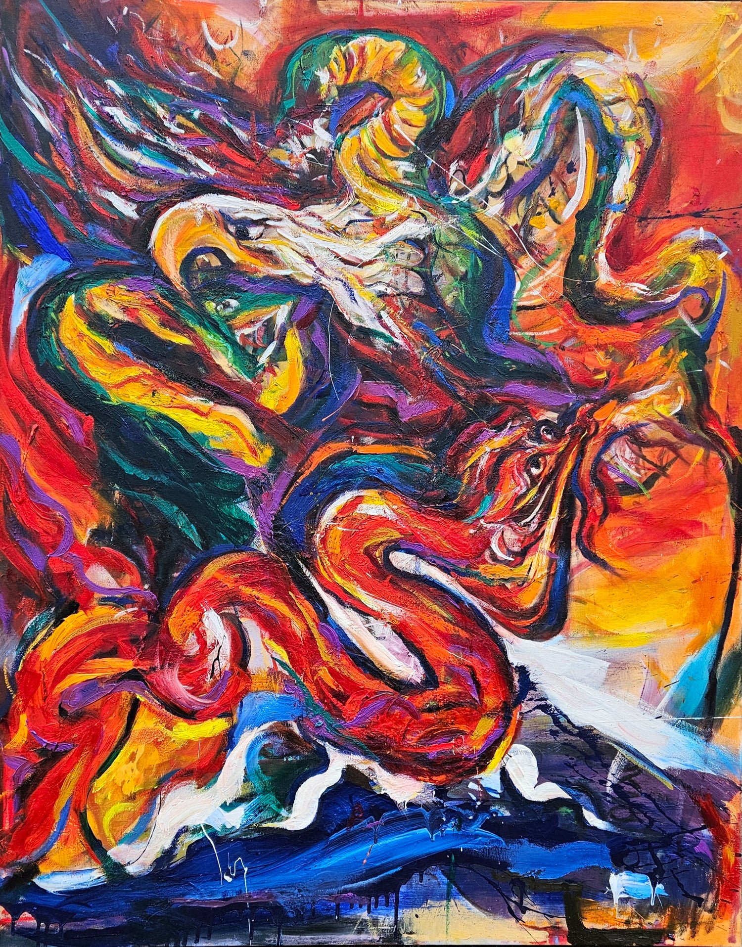 Oil/acrylic paint, oil stick,spray, graphite, markers, collage on canvas